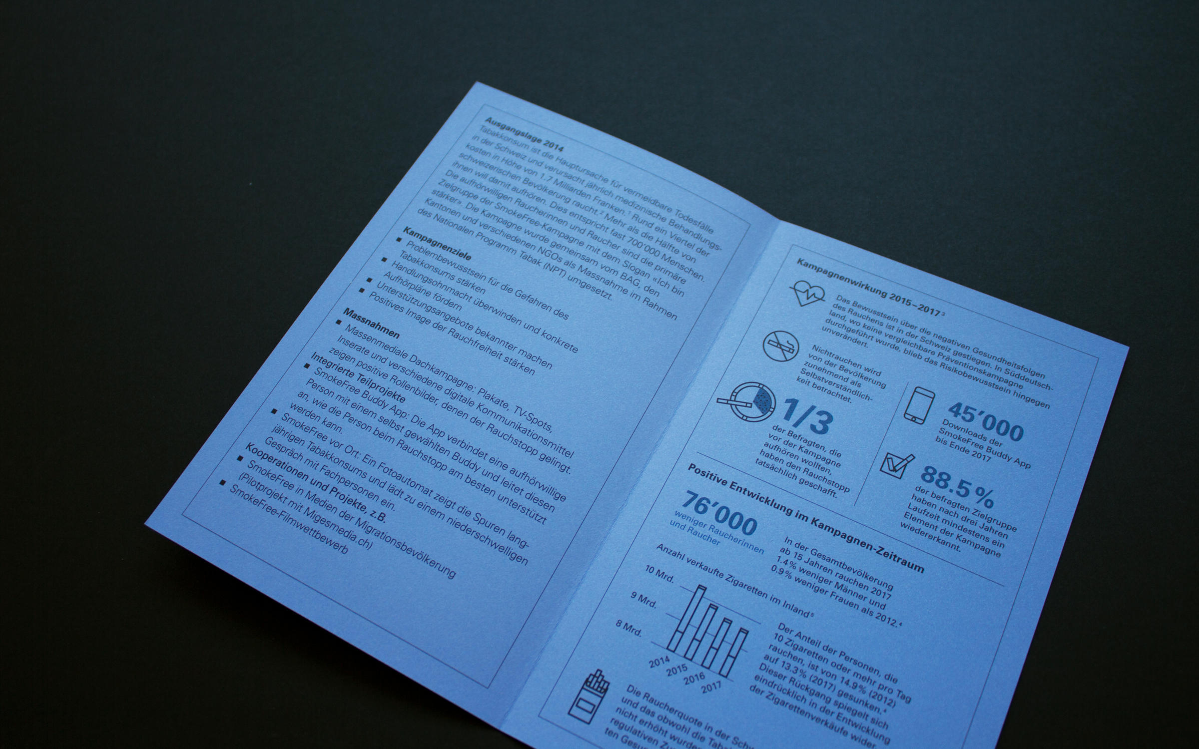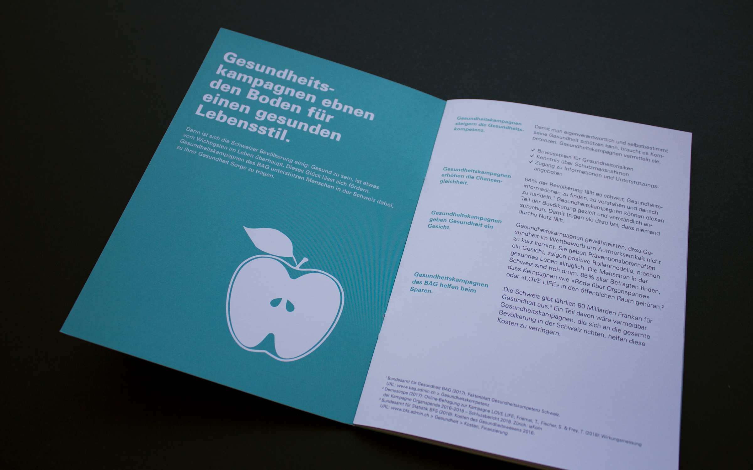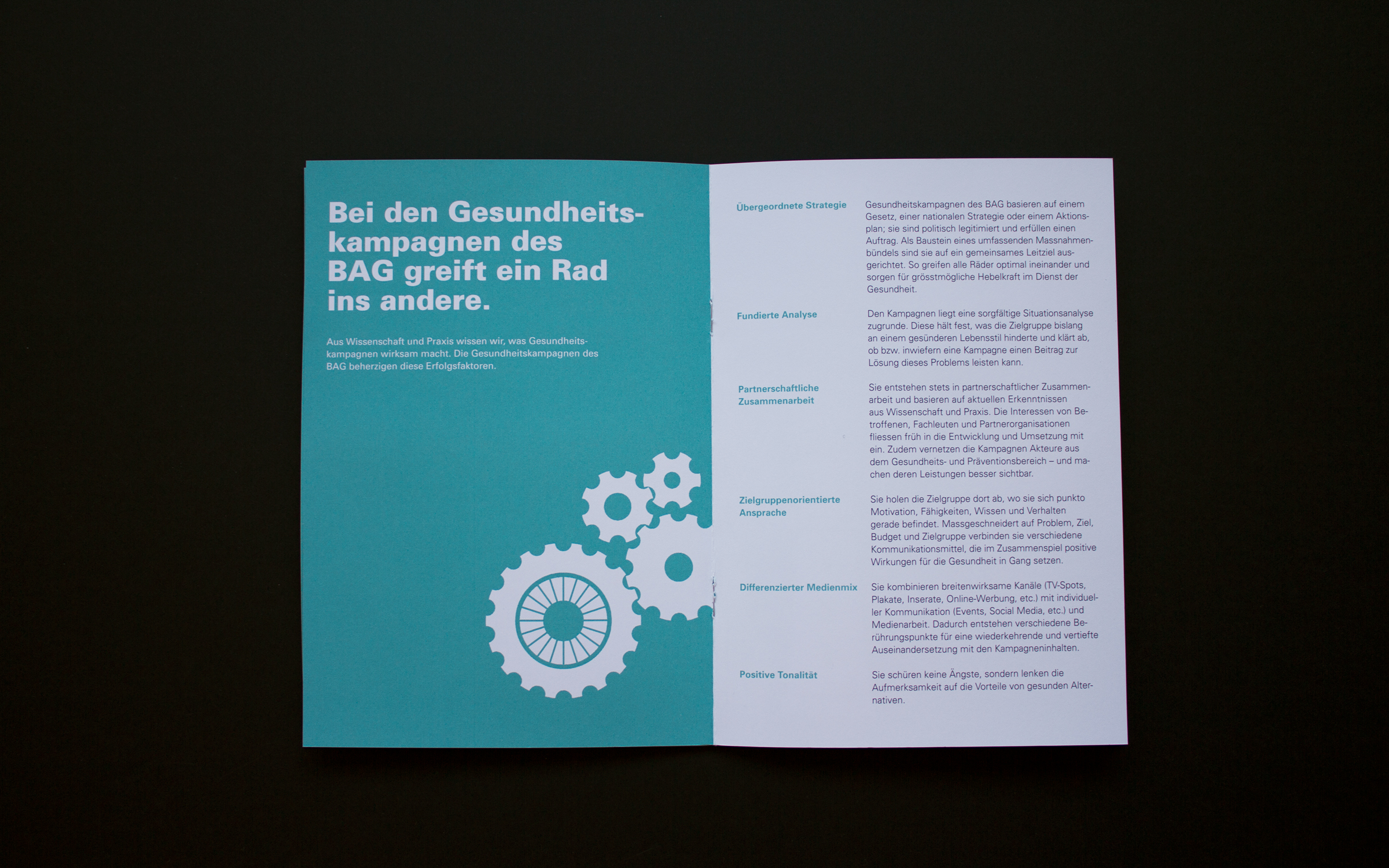 Das Bundesamt für Gesundheit (BAG) setzt sich mit vielfältigen Massnahmen für die Gesundheit in der Schweiz ein. Damit leisten die rund 600 Mitarbeitenden einen Beitrag, dass Menschen produktiv und selbstbestimmt leben können. Gleichzeitig ist das Wohlergehen der Bevölkerung ein wichtiger Einflussfaktor für ein funktionierendes und zahlbares Gesundheitssystem. gestalten AG unterstützt diese wichtige Aufgabe mit Ideen für Kommunikation und Design.