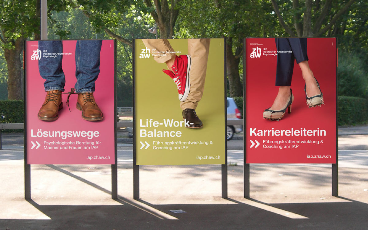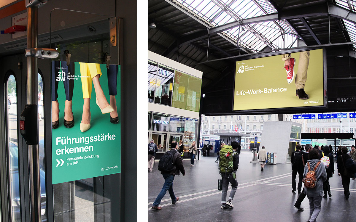 Das IAP macht Psychologie für den Alltag nutzbar. Mit Studium, Weiterbildung, Forschung und Dienstleistung. Wir bringen das Angebot der Fachhochschule in das Leben der verschiedenen Zielgruppen. Mit regionalen Plakatkampagnen, Verkehrsmittelwerbung und Informationsbroschüren.